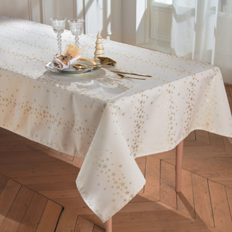 Pour accompagner les mets délicats des Fêtes, habillez votre table de cette nappe ivoire ponctuée d’étoiles dorées tissées. Chic mais aussi facile à vivre, son tissu satiné est antitache, quasi infroissable et sèche en un clin d’œil.