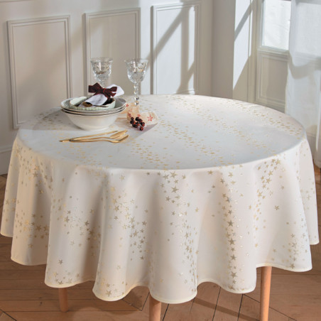 Pour accompagner les mets délicats des Fêtes, habillez votre table de cette nappe ivoire ponctuée d’étoiles dorées tissées. Chic mais aussi facile à vivre, son tissu satiné est antitache, quasi infroissable et sèche en un clin d’œil.