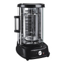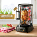 Avis aux gourmands : cette rôtissoire verticale dotée d’un système de rotation à 360° permet de dorer uniformément le poulet tout en conservant une chair moelleuse... comme chez le volailler. Il suffit de le positionner sur la broche, programmer la minuterie et il ne vous reste plus qu’à surveiller (et admirer !) la cuisson à travers la porte vitrée coulissante. Le récupérateur de graisse facilite la préparation de vos sauces et le nettoyage. Pour varier les plaisirs, l’appareil est livré avec 7 pics à brochettes.