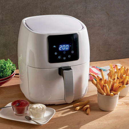Avec cette friteuse à air chaud de grande contenance (4,5 L), une cuillère d’huile suffit pour obtenir 6 belles portions de frites croustillantes. Et cette petite machine est capable d’autres merveilles : grâce à ses 7 programmes, vous pouvez griller, cuire, rôtir, chauffer ou réchauffer rôtis, poissons, gâteaux... Autre atout : la cuve passe au lave-vaisselle.