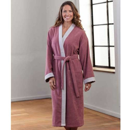 Forme kimono unisexe, 2 poches, ceinture sous passants. Accroche-patère.