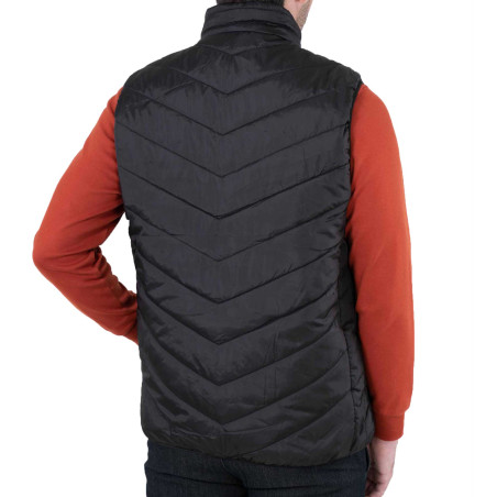 Emmanchures et base élastiquées, 2 poches zippées côtés, 1 zippée intérieure pour la batterie (amovible).