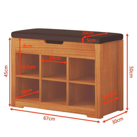 Dim. L. 67 x P. 30 x H. 49 cm, compartiment sous assise H. 8 cm.