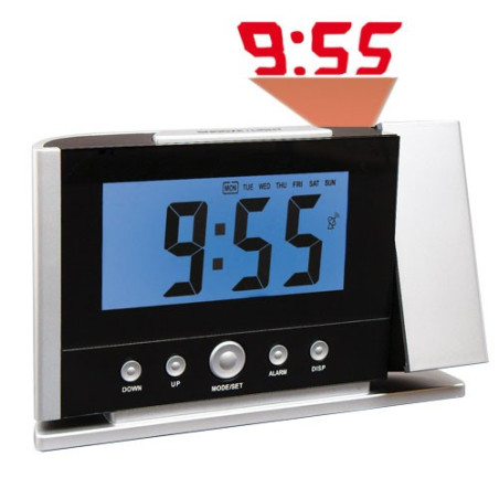 D’une grande lisibilité avec son écran rétro-éclairé à chiffres maxi format, il possède nombre de fonctions : température intérieure, alarme (hebdomadaire, 6 jours/7 ou 5 jours/7) avec snooze et projection de l’heure au mur ou au plafond !