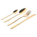 4 couteaux (22 cm), 4 fourchettes(20 cm), 4 cuillères à soupe (19,5 cm), 4 cuillères à café (14,5 cm).